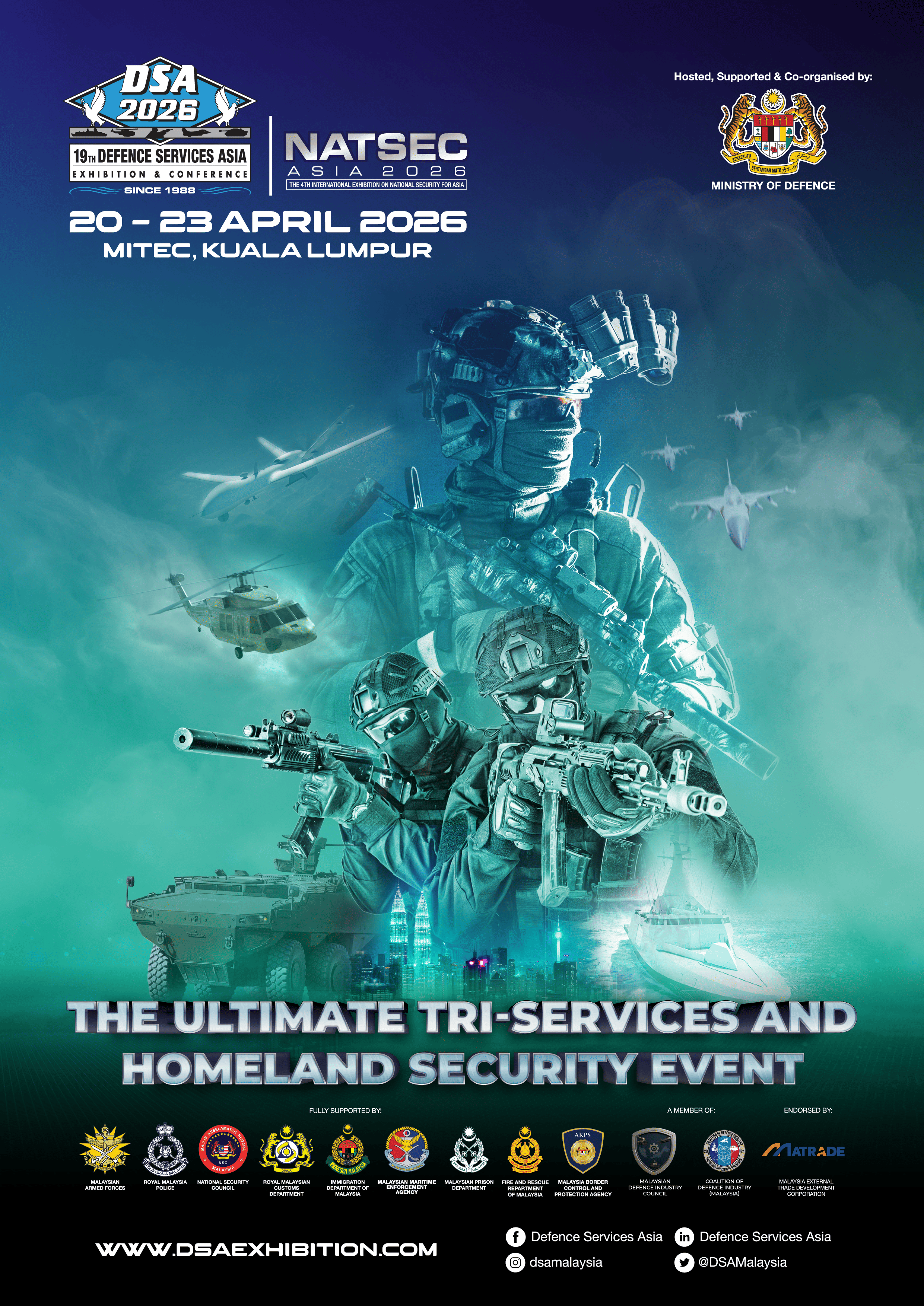As such, the Ministry of Defence, Malaysia is proud to once again work with the organisers and participants to ensure the ultimate success of DSA and NATSEC Asia.